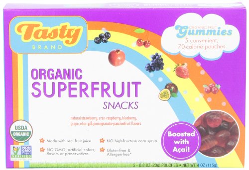 Tasty Brand Organic Fruit Snacks, Superfruit Fruit Flavors, 5 Count package