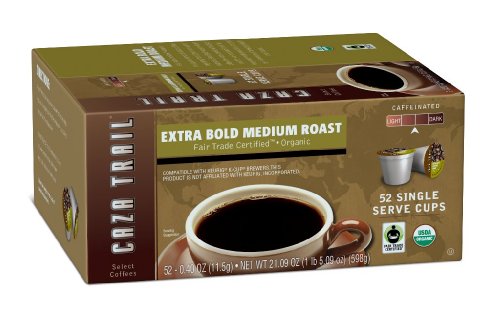 Caza Trail Coffee, Organic Extra Bold Medium Roast, 52 Single Serve Cups