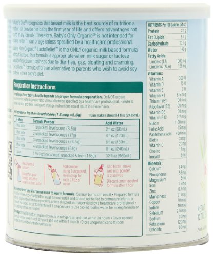 Baby’s Only Organic Lactose Relief is intended for babies who are lactose intolerant and is the perfect alternative to parents who want to keep away from soy protein in their baby’s diet plan. Baby’s Only Organic Lactose Relief is a milk primarily based formula, but the lactose or milk sugar has been reduced utilizing a special enzyme procedure.