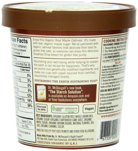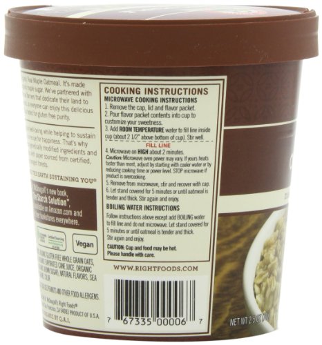 Dr. McDougall?s Right Foods Organic Maple Oatmeal Cups Made with Organic Gluten Free Oatmeal, 2.5-Ounce Cups (Pack of 6)