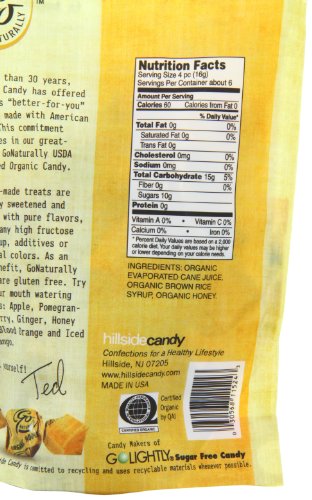 Gonaturally organic honey gluten totally free difficult candies comes in packe of six, each and every weighs 3.5 ounce bags (total of 21 ounces). It is created by hand in america. It is gluten free of charge and includes all organic flavors. Hillside candy is our company’s corporate umbrella name for three brands of candy. The brands are golightly sugar free candy, in organization since 1980 (even though the enterprise began numerous years earlier), hillside sweets, a line of sugar primarily based challenging candy, and gonaturally, a line of USDA certified organic candy. These three created in america lines are sold in drug retailer chains, mass merchandisers, grocery chains, supermarkets, gourmet retailers, rebaggers, gift basket businesses and other companies. Every of hillside’s lines delivers high quality, consistency and delicious taste.