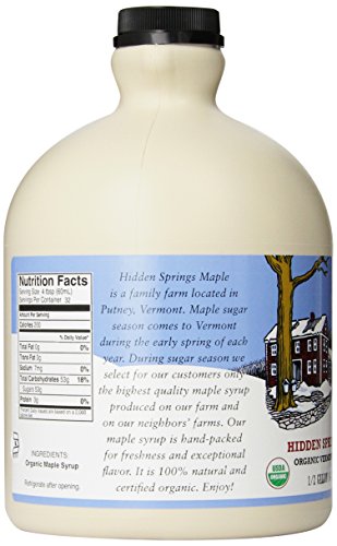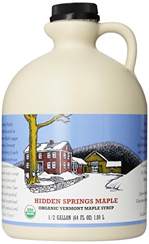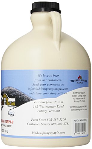 Hidden Springs Maple Vermont Maple Syrup, Half Gallon Grade A Medium Organic, 64 Ounce