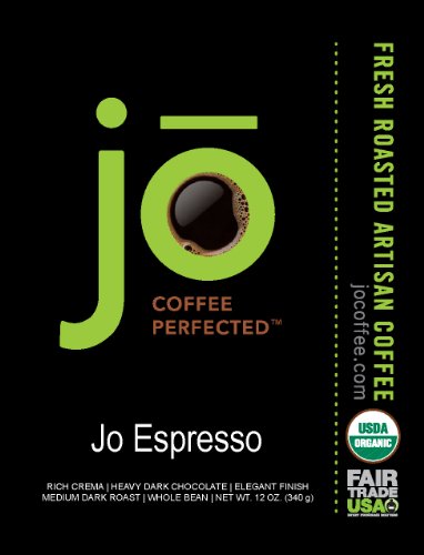 JO ESPRESSO: 12 oz, Medium Dark Roast, Whole Bean Arabica Espresso Coffee, USDA Certified Organic Espresso, Fair Trade Certified, Gourmet Espresso Beans from the Jo Coffee Collection