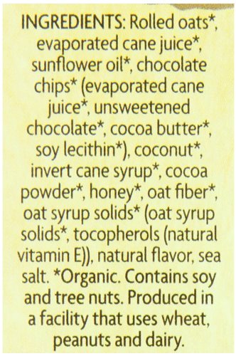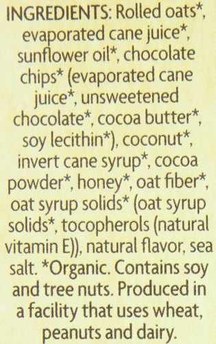 - Rolled oats; Chocolate chips; Cocoa butter; Honey; Sea salt