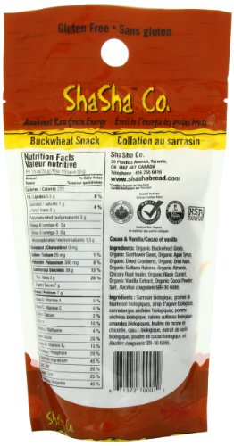 These all organic cocoa and vanilla buckwheat snacks are gluten-free of charge, wheat-cost-free, raw, and vegan. They are produced by ShaSha co, an organic and all-natural, eco-friendly boutique style bakery.