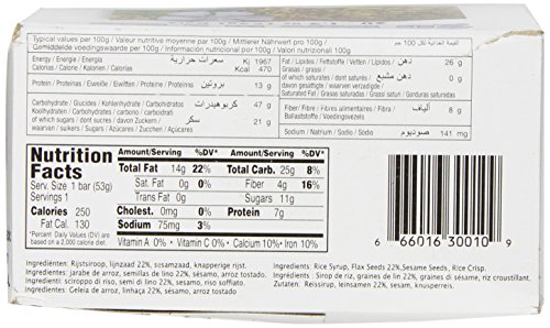 - Box of 20 - 1.9oz Flax Seed Bars; 7g of protein; 4g of fiber; great source of omega-3