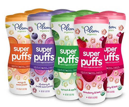 Super Puffs, a colorful line of bite-sized, nutritious puffed snacks, are made with whole grains and organic veggies and fruit. With 14 essential vitamins and minerals, Super Puffs delight tiny taste buds with a rainbow of nutritional goodness. Perfectly sized baby food for little fingers, this snack encourages self- feeding and easily dissolves into grins and giggles. Teach your little stars to eat their colors. Super Puffs are USDA certified organic, and contain no genetically modified ingredients, artificial flavors or artificial sweeteners.