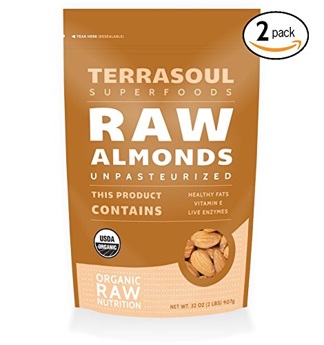 About Terrasoul Superfoods Organic Unpasteurized Almonds: Our unpasteurized almonds are truly raw and alive and are never treated by irradiation, ultra high heat, steam or chemically sterilized as required for all domestically grown and sold almonds, even those labeled as “raw”. Our almonds are imported from Spain where pasteurization mandated by the USDA is not a requirement. Our unpasteurized almonds are still a whole, complete food with their fats, enzymes all intact and are sprout-able and make wonderful almond milk that stays fresher longer than pasteurized almond milk. Key Nutrition Benefits of Terrasoul Superfoods Organic Unpasteurized Almonds: Almonds are a wonderful source of vitamin E, magnesium, and the good mono and polyunsaturated fats responsible for lowering LDL cholesterol. Our almonds also offer a healthier alternative to almonds pasteurized with propylene oxide gas, a known carcinogen. Suggested Uses: Use them to make delicious homemade almond milk, gluten-free almond meal/flour or eat them by the handful for a healthy snack. Why buy from Terrasoul Superfoods? – We stand behind our products and offer a 30-day money back guarantee, backed by an outstanding customer service team. – We source only the freshest and highest quality ingredients from sustainable organic farms. – We refrigerate our almonds during storage and shipping to insure they are fresh when delivered to you. – We operate a FDA-licensed and inspected certified organic facility, unlike other Amazon sellers that make organic claims without being USDA certified. Always look for the USDA seal and certifier on a product label when purchasing organic.