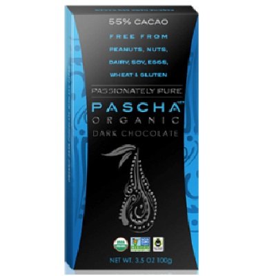 Made with choice aroma cocoa beans from peru, blended to create a smooth, fruity and rich cocoa flavour with a hint of organic vanilla. Paschas 55% cacao is made in a dedicated allergen free facility free from peanuts, nuts, dairy, soy, eggs, wheat and gluten.Our chocolate collection is USDA organic certified, fair trade certified, non-gmo project verified, kosher and vegan.