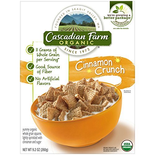 Organic wheat bran flakes with plump organic raisins. Excellent source of fiber. Heart healthy diets rich in grain products with soluble fiber like raisin bran may lower cholesterol. USDA organic. This product is certified organic by the Washington State Department of Agriculture. in accordance with the organic standards of the U.S. Department of Agriculture. Diets low in saturated fat and cholesterol and rich in fruits, vegetables and grain products that contain some types of dietary fiber, particularly soluble fiber, may reduce the risk of heart disease, a disease associated with many factors. At Cascadian Farm, we are as concerned about your health as we are about the environment. That’s why our cereals not only use the finest organic ingredients, but are also good for your heart. Cascadian Farm Raisin Bran is the classic cereal you love, now made with organic ingredients. Each serving is an excellent source of fiber and heart-healthy diets rich in grain products with soluble fiber may lower cholesterol. You can feel good about starting your day with the great taste and good nutrition of Cascadian Farm Raisin Bran. Low fat – 1.5 g. No saturated fat. Naturally cholesterol free. 9 essential vitamins and minerals.