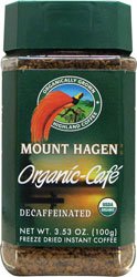 Mount Hagen Organic CafT Decaffeinated Freeze Dried Instant Coffee — 3.53 oz.Mount Hagen Organic Instant Coffee is a blend of 100% Arabica coffee beans with a smooth, rich flavor. These choice beans are carefully selected from only organic growers who provide a safe social and economic environment for their workers. Mount Hagen Organic Instant Coffee is perfect for: small households, travelers and students — there’s no need to brew a whole pot of coffee.