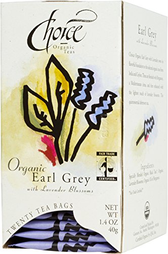 Fair Trade certified. Choice Organic Earl Grey with Lavender owes its flavorful foundation to the selected organic teas from India & Ceylon. These are blended with Bergamot, A Mediterranean citrus, and then enhanced with the lightest touch of lavender blossoms. the quintessential afternoon tea. Choice Organic Teas are certified as organically grown by an independent third party. Every aspect of the cultivation, handling and packaging is carefully inspected to insure the integrity of this product from the gardens of origin to your cup. Choice Organic Teas come from garden tended by traditional methods, without the use of chemicals. Conscious practice of top soil management and weed control create a balanced environment to alleviate any agricultural problems. Through diligent care of the environment, our growers produce exceptional teas and herbs. Fair Trade guarantees fair wages for workers, improving their opportunities for better healthcare, hosing and education. By choosing Fair Trade tea, you are directly contributing to the livelihood of tea growing communities. This Fair Trade tea is independently certified by TransFair USA. USDA organic. Certified organic by QAI, Inc. The tea bags in this package are made with unbleached natural fibers. A special environmentally-safe, high barrier envelope protects the freshness and flavor of the tea.