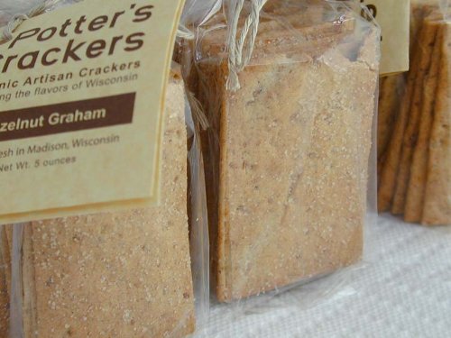 Potter’s Organic Hazelnut Graham Crackers are the perfect compliment to fine foods. Enjoy three 5 oz. packages of delicious Organic Hazelnut Graham Crackers. Produced from fresh ingredients, our artisan crackers are mixed, rolled and baked fresh in our Madison, Wisconsin cracker kitchen. They’re perfect for holiday parties, tailgating events, or just for snacking. Potter’s Crackers use all organic ingredients, sourced locally as much as possible. Certified MOSA – Midwest Organic Services Assocaition. Shelf life in approximately 10 weeks, but best used within 2 weeks of delivery.