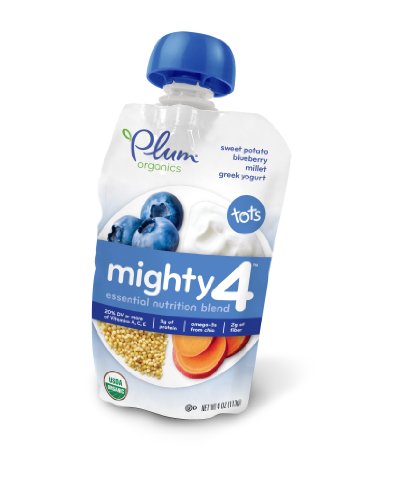 Plum Organics Mighty 4 Essential Nutrition Blend Pouch, Sweet Potato, Blueberry, Millet and Greek Yogurt, 4 Ounce (Pack of 12)
