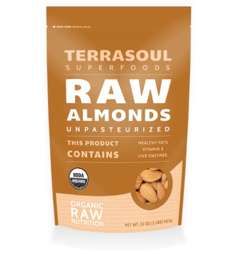 About Terrasoul Superfoods Organic Unpasteurized Almonds: Our unpasteurized almonds are truly raw and alive and are never treated by irradiation, ultra high heat, steam or chemically sterilized as required for all domestically grown and sold almonds, even those labeled as “raw”. Our almonds are imported from Spain where pasteurization mandated by the USDA is not a requirement. Our unpasteurized almonds are still a whole, complete food with their fats, enzymes all intact and are sprout-able and make wonderful almond milk that stays fresher longer than pasteurized almond milk. Key Nutrition Benefits of Terrasoul Superfoods Organic Unpasteurized Almonds: Almonds are a wonderful source of vitamin E, magnesium, and the good mono and polyunsaturated fats responsible for lowering LDL cholesterol. Our almonds also offer a healthier alternative to almonds pasteurized with propylene oxide gas, a known carcinogen. Suggested Uses: Use them to make delicious homemade almond milk, gluten-free almond meal/flour or eat them by the handful for a healthy snack. Why buy from Terrasoul Superfoods? – We stand behind our products and offer a 30-day money back guarantee, backed by an outstanding customer service team. – We source only the freshest and highest quality ingredients from sustainable organic farms. – We refrigerate our almonds during storage and shipping to insure they are fresh when delivered to you. – We operate a FDA-licensed and inspected certified organic facility, unlike other Amazon sellers that make organic claims without being USDA certified. Always look for the USDA seal and certifier on a product label when purchasing organic.