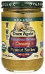 Peanut Butter Creamy No Salt Organic Once Again Nut Butters 16 oz Liquid