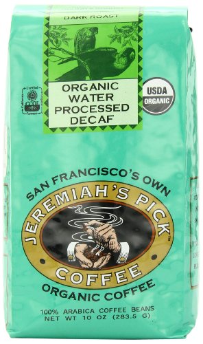 Jeremiah’s Pick Coffee Organic Water Processed Decaf, Raisin & Chocolate Round and Robust Whole Bean Coffee, Dark Roast, 10 Ounce Bag