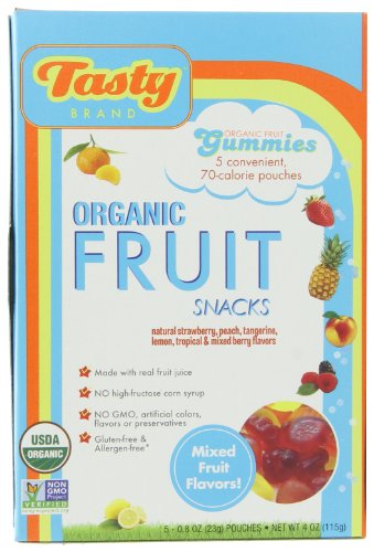 Tasty Brand Organic Fruit Snacks, Mixed Fruit Flavors, 4 Ounces 5-Count Packages (Pack of 6)