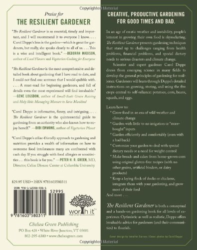 Scientist/gardener Carol Deppe combines her passion for organic gardening with newly emerging scientific info from several fields — resilience science, climatology, climate adjust, ecology, anthropology, paleontology, sustainable agriculture, nutrition, overall health, and medicine. In the last half of The Resilient Gardener, Deppe extends and illustrates these principles with detailed details about developing and utilizing five key crops: potatoes, corn, beans, squash, and eggs. In this book you’ll learn how to: •Garden in an era of unpredictable weather and climate change •Grow, retailer, and use far more of your personal staple crops •Garden effectively and comfortably (even if you have a undesirable back) •Grow, store, and cook distinct varieties of potatoes and save your own potato seed •Grow the correct varieties of corn to make your own gourmet-high quality fast-cooking polenta, cornbread, parched corn, corn cakes, pancakes and even savory corn gravy •Make entire-grain, corn-based breads and cakes making use of the author’s original gluten-totally free recipes involving no other grains, artificial binders, or dairy merchandise •Grow and use popbeans and other grain legumes •Grow, retailer, and use summer, winter, and drying squash •Keep a home laying flock of ducks or chickens integrate them with your gardening, and grow most of their feed. The Resilient Gardener is each a conceptual and a hands-on organic gardening book, and is suitable for vegetable gardeners at all levels of knowledge. Resilience here is broadly conceived and encompasses a full variety of problems, from personal challenging occasions such as injuries, loved ones crises, monetary difficulties, well being issues, and particular dietary demands (gluten intolerance, meals allergies, carbohydrate sensitivity, and a want for weight manage) to critical regional and worldwide disasters and climate alter. It is a supremely optimistic as well as realistic book about how resilient gardeners and their vegetable gardens can flourish even in challenging occasions and aid their communities to survive and thrive through every thing that comes their way — from tomorrow by way of the next thousand years. Organic gardening, vegetable gardening, self-sufficiency, subsistence gardening, gluten-free of charge living.