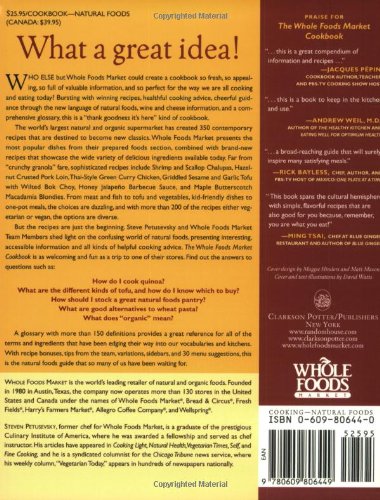 Who else but Entire Foods Market place could develop a cookbook so fresh, so attractive, so full of valuable details, and so perfect for the way we are all cooking and consuming today? Bursting with winning recipes, healthful cooking advice, cheerful guidance by way of the new language of organic foods, wine and cheese data, and a complete glossary, this is a “thank goodness it is here” type of cookbook.The world’s largest all-natural and organic supermarket has produced 350 contemporary recipes that are destined to turn into new classics. Whole Foods Industry presents the most well-liked dishes from their prepared foods section, combined with brand-new recipes that showcase the wide range of scrumptious ingredients available today. Far from “crunchy granola” fare, sophisticated recipes include Shrimp and Scallop Chalupas, Hazelnut Crusted Pork Loin, Thai-Style Green Curry Chicken, Griddled Sesame and Garlic Tofu with Wilted Bok Choy, Honey Jalapeño Barbecue Sauce, and Maple Butterscotch Macadamia Blondies. From meat and fish to tofu and vegetables, kid-friendly dishes to one particular-pot meals, the alternatives are dazzling, and with far more than 200 of the recipes either vegetarian or vegan, the options are diverse.But the recipes are just the beginning. Steve Petusevsky and Whole Foods Marketplace Team Members shed light on the confusing globe of natural foods, presenting fascinating, accessible data and all types of valuable cooking guidance. The Whole Foods Marketplace Cookbook is as welcoming and entertaining as a trip to a single of their retailers. Discover out the answers to questions such as:How do I cook quinoa?What are the diverse types of tofu, and how do I know which to get?How need to I stock a fantastic natural foods pantry?What are great options to wheat pasta?What does “organic” mean?A glossary with more than 150 definitions provides a fantastic reference for all of the terms and components that have been edging their way into our vocabularies and kitchens. With recipe bonuses, ideas from the group, variations, sidebars, and 30 menu suggestions, this is the organic foods guide that so numerous of us have been waiting for.