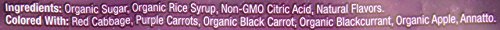 USDA certified organic and kosher certified (parve) candy non gmo gluten-totally free wheat-free of charge nut-totally free dairy-free of charge egg-cost-free casein-free of charge soy-free of charge. No corn syrup no artificial dyes, colors, flavors or preservatives. Components: organic sugar, organic rice syrup, non-gmo citric acid, organic flavors colored with red cabbage, purple carrots, organic black carrot, organic blackcurrant, organic apple, annatto top candy sector awards: kosherfest, coffee fest, NCSA hall of fame and specialty meals association sofi silver award, oprah o list 2014 all candies are individually wrapped, 12 calories every.