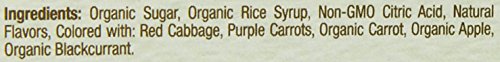- Ingredients: organic sugar, organic rice syrup, non-GMO citric acid, natural flavors; Colored with red cabbage, purple carrots, organic carrot, organic apple, organic blackcurrant