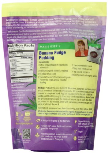 Wholesome Sweeteners Fairtrade Organic Powdered Sugar is made from 100% certified organic sugar cane, grown and produced without the use of herbicides, pesticides or chemical compounds. Our powdered sugar is created by merely grinding our Fairtrade Organic Sugar to a fine, fluffy powder (12x) and adding 3% organic tapioca to prevent clumping. In contrast to refined white powdered sugar with its overpowering, chalky sweetness, Wholesome Sweeteners Fairtrade Organic Powdered Sugar retains a bit of the cane\'s organic molasses to give a smooth, mellow and rounded flavour. Several moms like that this organic powdered sugar is corn-cost-free also. It is best for cookies, frostings, fillings, dusting, and baking. Use as a one-for-one replacement for refined powdered sugar. Attempt dusting complete grain waffles, French toast, or stuffed crepes with a bit of Organic Powdered Sugar for a specific breakfast treat. When producing easy water icing, the organic powdered sugar provides a faint golden colour and delectable mellow toffee flavour derived from the natural molasses retained in the unrefined, unbleached organic sugar. For a lot more recipes, visit www.wholesomesweeteners.com! The Fairtrade Certified logo is Wholesome Sweeteners\' assure that our farming cooperatives are paid directly for the cane grown and milled. This indicates that farmers can compete with factory farms, cultivate the good quality of their crops, send their youngsters to college and construct thriving communities. Thank you for picking Wholesome Sweeteners and assisting to make the globe a sweeter place.