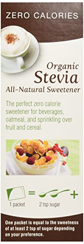 - 1 packet or 1 teaspoon of Organic Stevia sweetens like 2-3 teaspoons of sugar depending on your taste buds